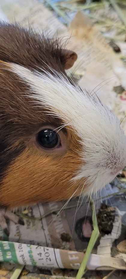 Meet Twiz! Our sweet and gentle guinea pig that is bonded to Twinkie! Twiz is a squeaky and curious soul who loves to explore her surroundings, especially when there are delicious veggies involved! While she can be a bit shy at first, Twiz quickly warms up to gentle pets and enjoys a good snuggle. Twiz would thrive in a calm, quiet home with someone who can offer plenty of patience and and enrichment! If you're looking for a pair of pocket pals that are low-maintenance and adorable companions then Twiz and Twinkie will be the perfect fit!
