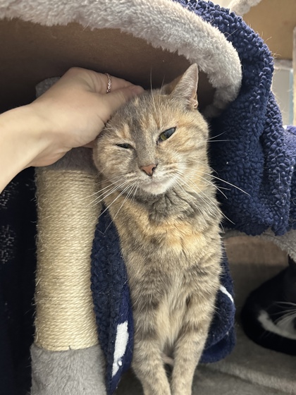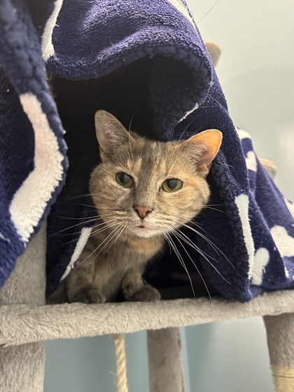 Meet Callie, a sweetheart with a gentle soul who is waiting for her forever family. Callie is here with her bonded best friend, Skittles. Together, they can be a bit reserved at first, but once they are comfortable, these duo has so much love to give. Callie adores basking in sunbeams, curling up in her favorite blanket, and quietly observing the world from a safe spot. She's looking for a patient home where she can come out of her shell at her own pace and reveal the delightful, affectionate cat we know her to be.
