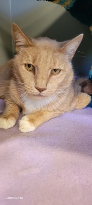 Once you've earned his trust, Gus reveals a wonderfully goofy and loving personality. He'll happily sit by your side, purr his approval during a good head scratch, and keep a watchful eye over his favorite people. He's a low-key companion who is past his chaotic kitten days, preferring calm evenings with a good meal to a bustling household. Gus has lived happily with other mellow cats and would be content as an only pet or with a quiet, respectful feline friend.