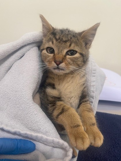 Kittens often do best in pairs, so please consider adopting him with a littermate or another playful cat or kitten.