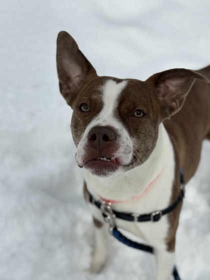 Jingle is a 2-year-old medium-sized guy with so much potential and heart. He's currently putting in the work at Midcoast Humane, focusing on his basic manners and improving his leash skills-and he's making great progress!